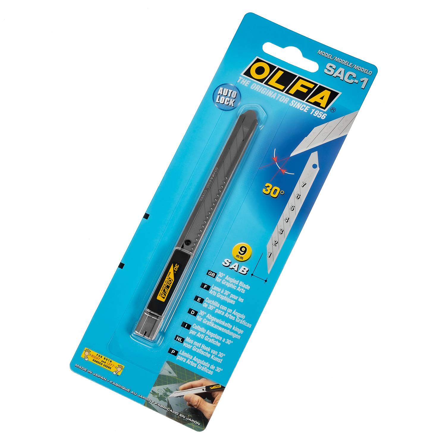 Konstrukcja noża została specjalnie przystosowana do 9mm ostrzy segmentowych o kącie wierzchołkowym 30°, dzięki czemu suwak blokuje ostrze dokładnie co jeden segment.
