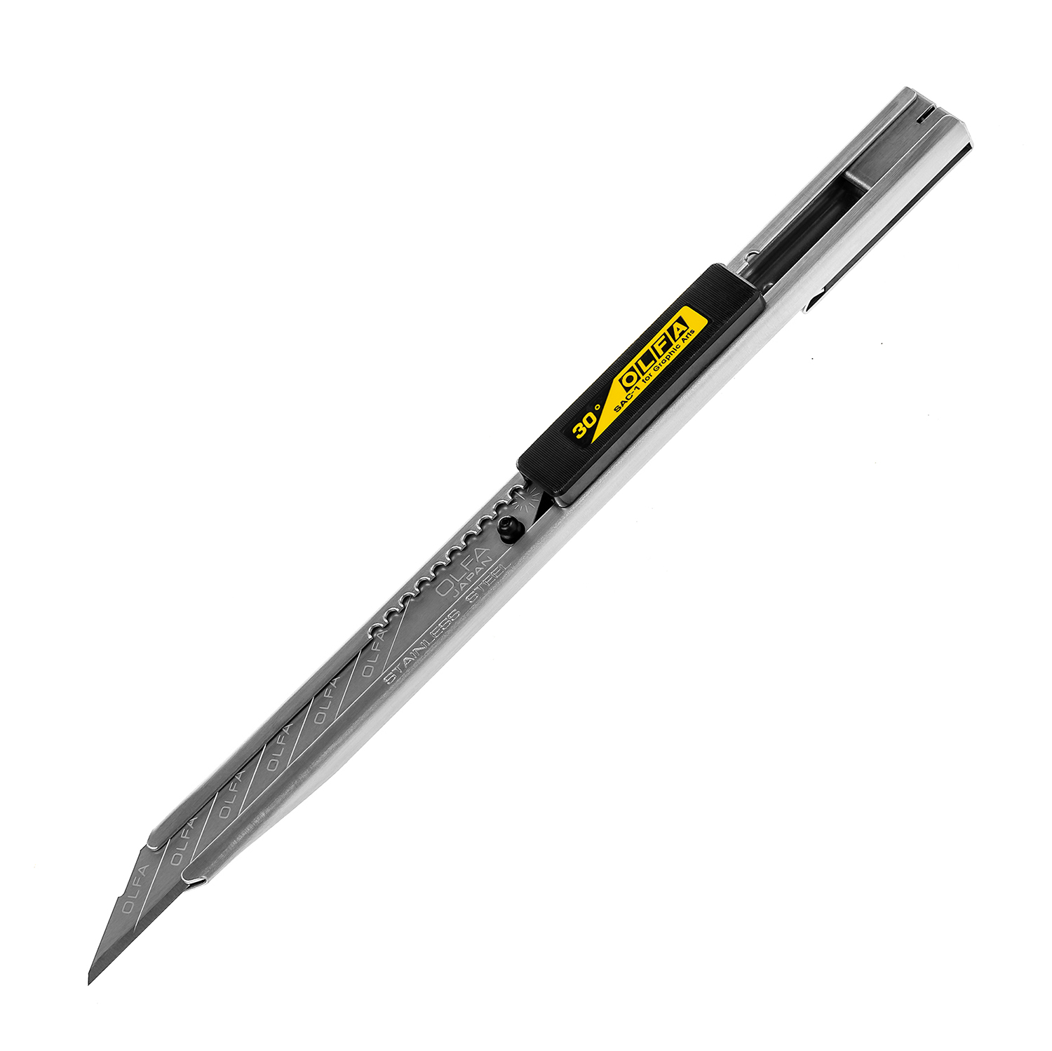 Profesjonalny Nóż OLFA SAC-1 z ostrzem segmentowym. Rękojeść wykonana ze stali nierdzewnej.