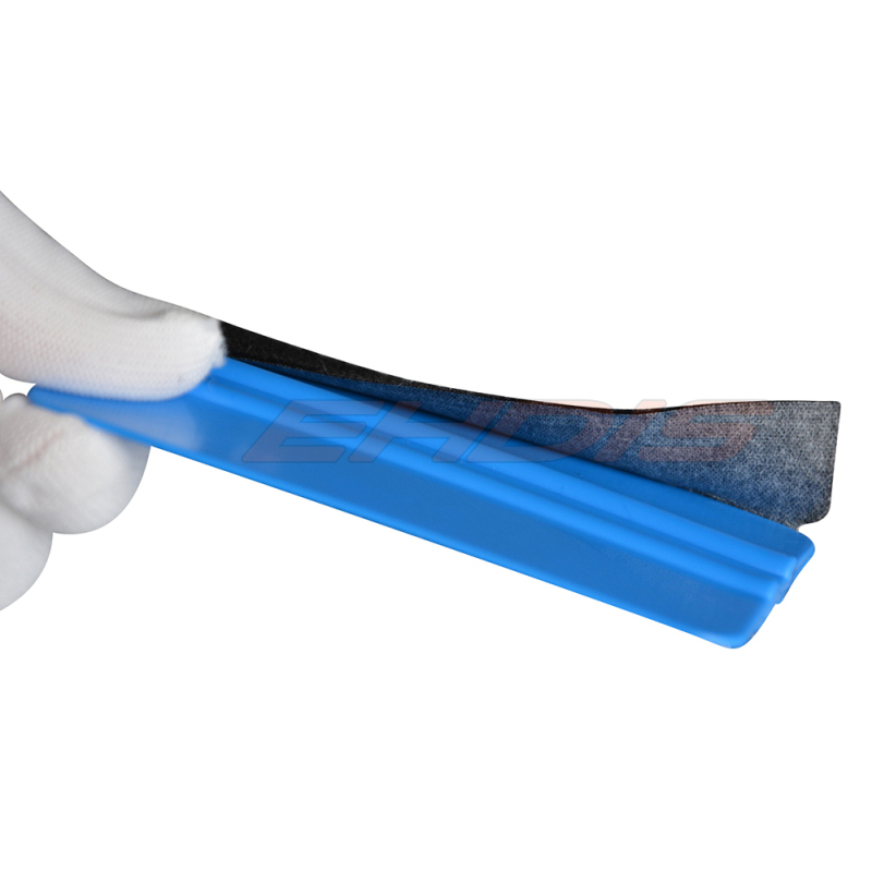 Twardość materiału rakli w połączeniu z miękkim filcem pomaga usuwać nierówności folii a zarazem chroni ją przed zarysowaniami w trakcie aplikacji.